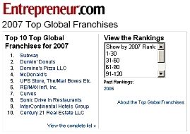 On the TOP 10 Top Global Franchises for 2007 of American magazine Entrepreneur RE/MAX franchise is ranked as the best real estate franchise, positioned on the 6th place. The first place is taken by Subway (1st), McDonald’s (4th), and behind them are positioned much more known and expensive InterContinental, Burger King, Hilton Hotels & Resorts etc.
